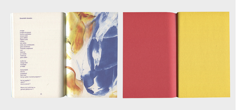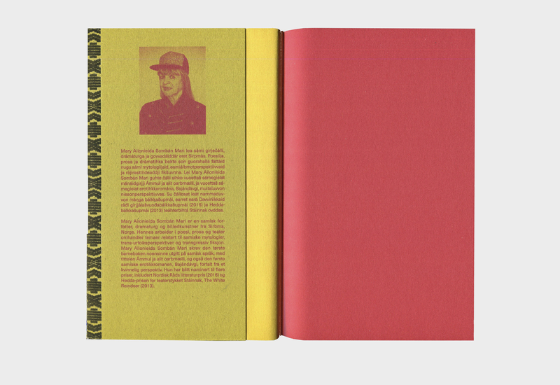 In close collaboration with the editor Tanya we worked on how to incorporate a Sami sensibility, which at times meant reconsidering the usual western-way of seeing and designing a publication. Indigenous aesthetic systems are often grounded in epistemological cosmologies, rendering complex cultural codes for ordering the world into simple designs, such as certain colours indicating life stages, spiritual realms, and other types of animated forces, and patterns embodying cardinal directions.